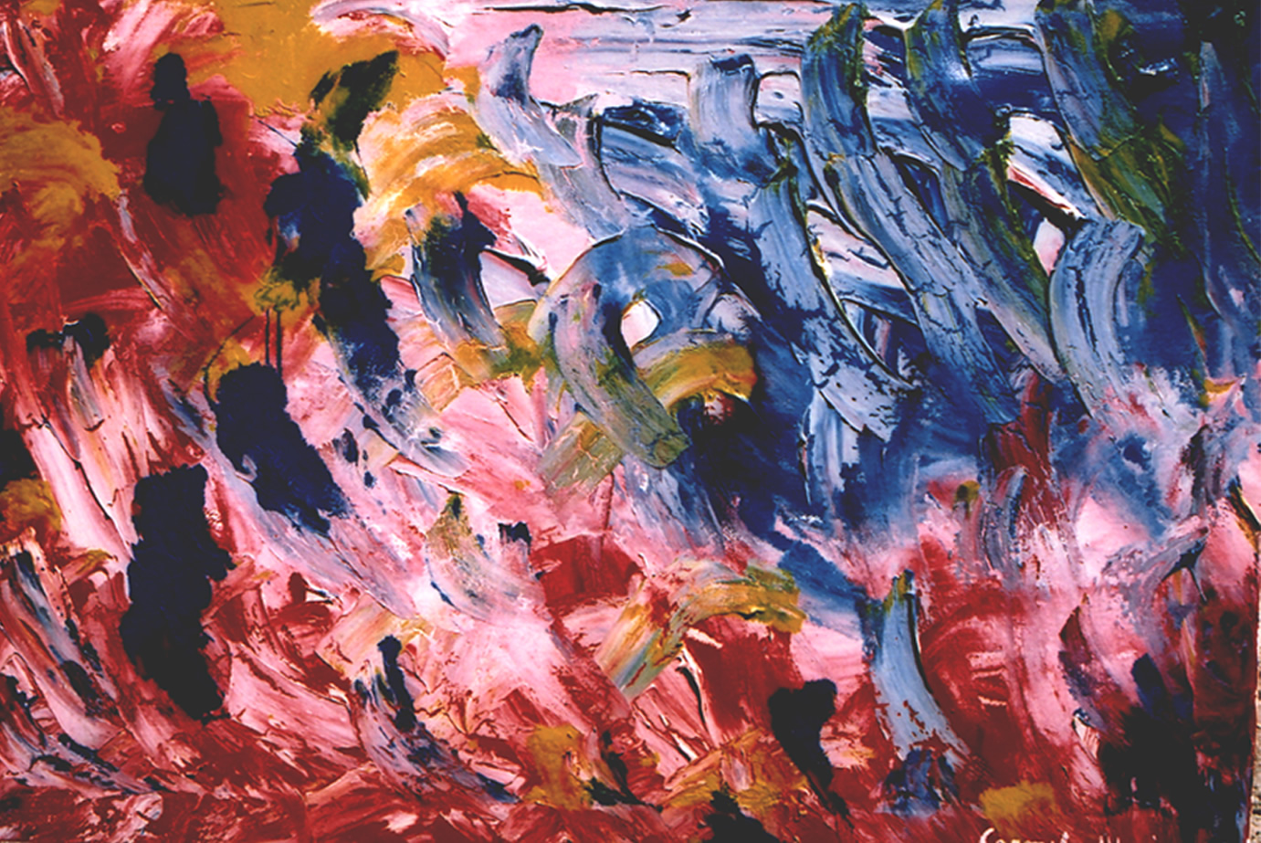 Descrizione dell'opera : L'alba di un fiume - smalto e colla su tela - cm 70x100 - Milano Collezione Privata